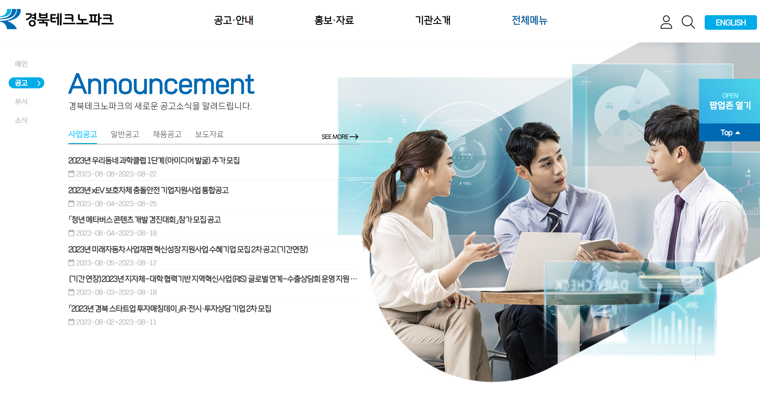 경북테크노파크 사이트에 들어갔는데요. 타 지역 분들은 각 지역에 맞는 테크노파크(TP) 사이트에 들어가시면 된답니다.