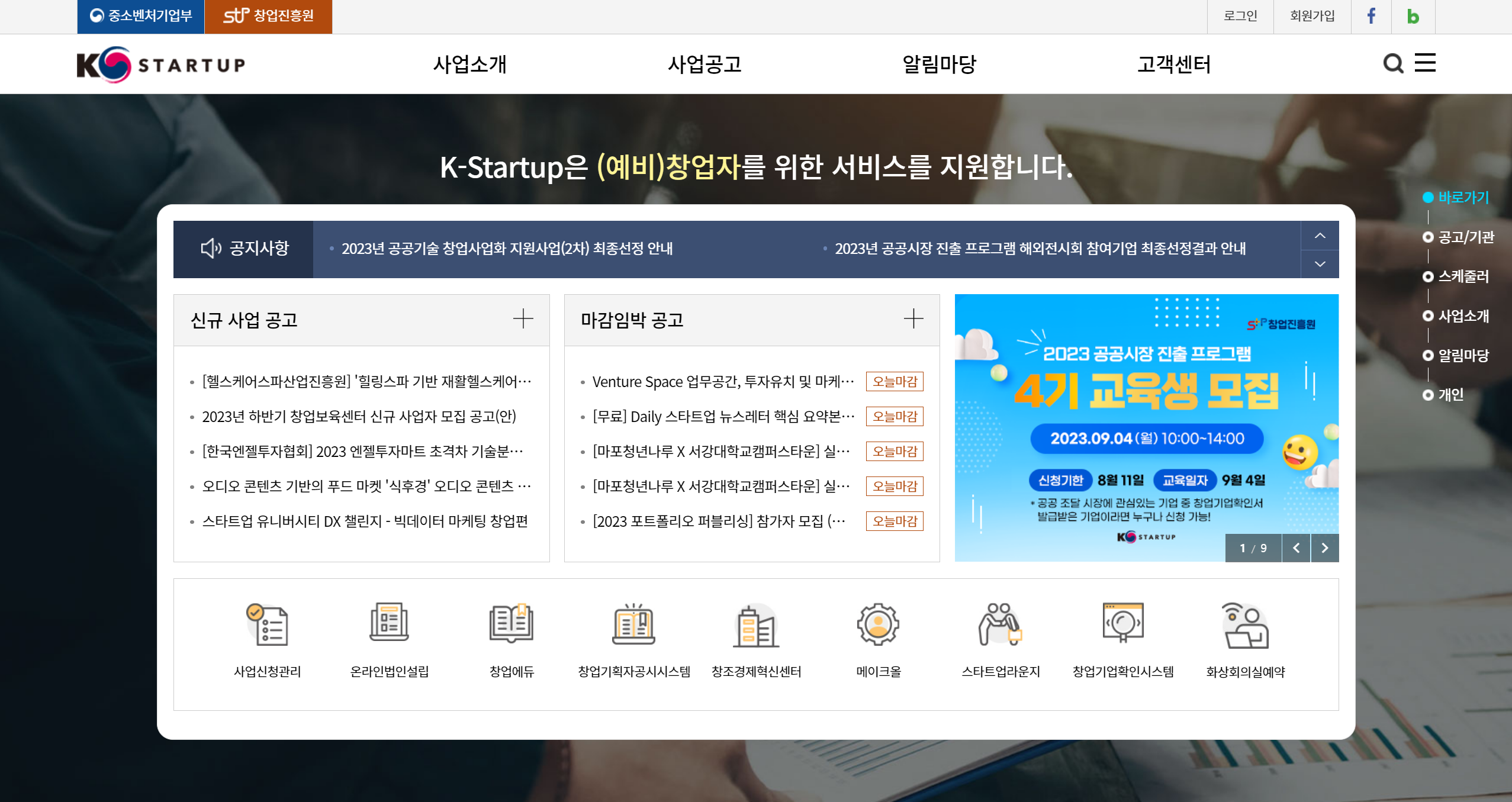 중소벤처기업부 운영 창업지원포털 창업지원사업 정보 통합·제공 및 온라인창업교육, 창업공간정보, 온라인법인설립 서비스 제공