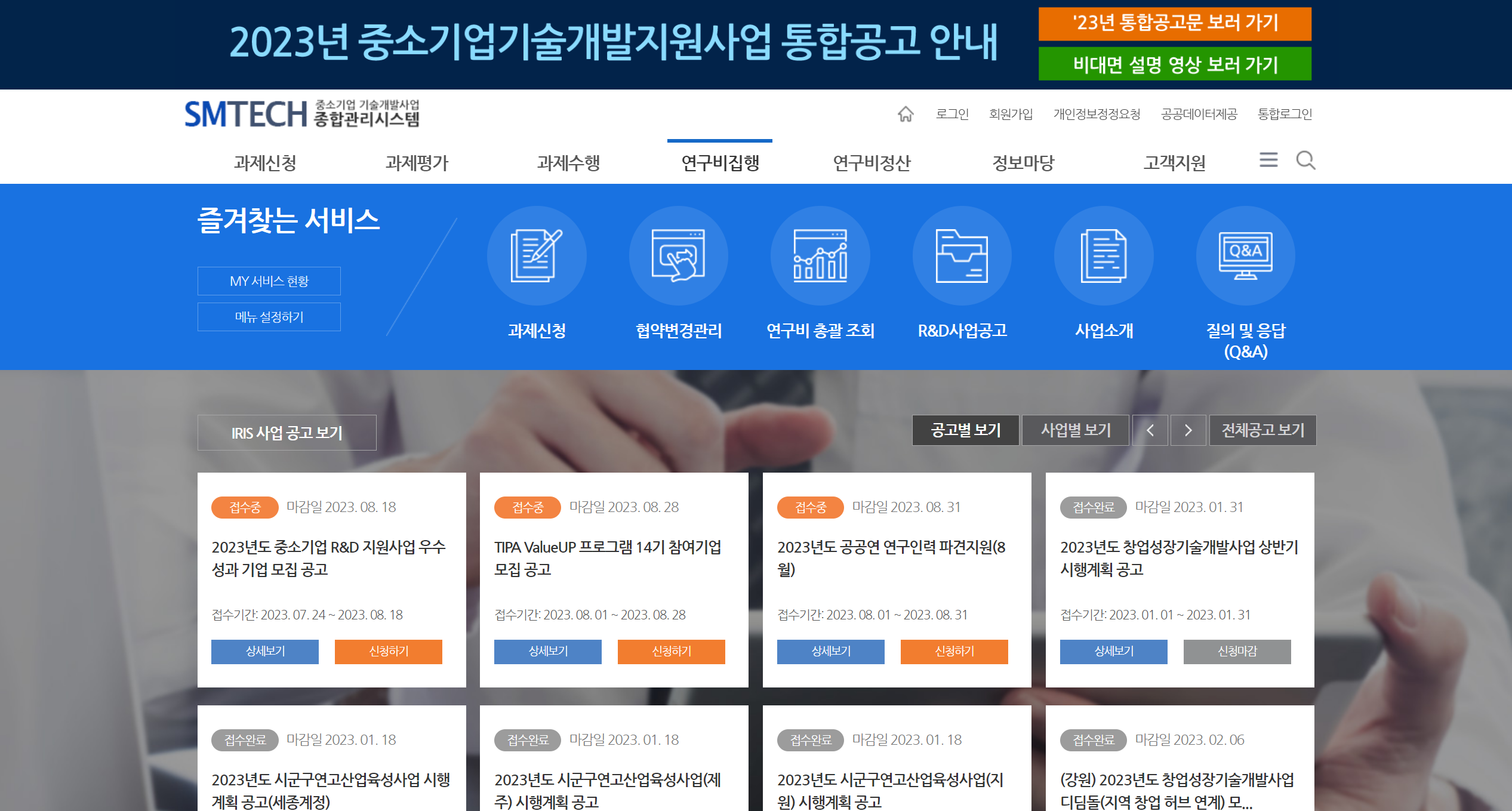 중소벤처기업부가 시행하는 중소기업기술개발지원사업의 신청, 협약, 연구비집행 등을 지원하는 종합관리시스템