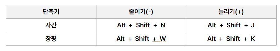 장평은 ALT + SHIFT + W, ALT + SHIFT + K입니다.