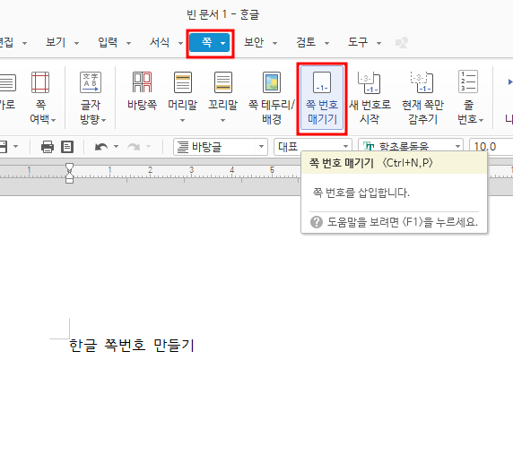 쪽번호 매기기 방법