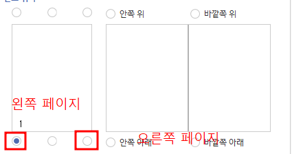 왼쪽 오른쪽 페이지 구분을 위한 쪽 번호 설정