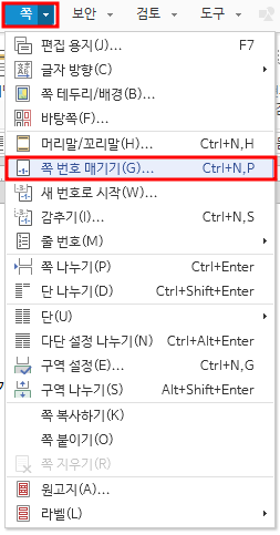 쪽번호 매기기 방법